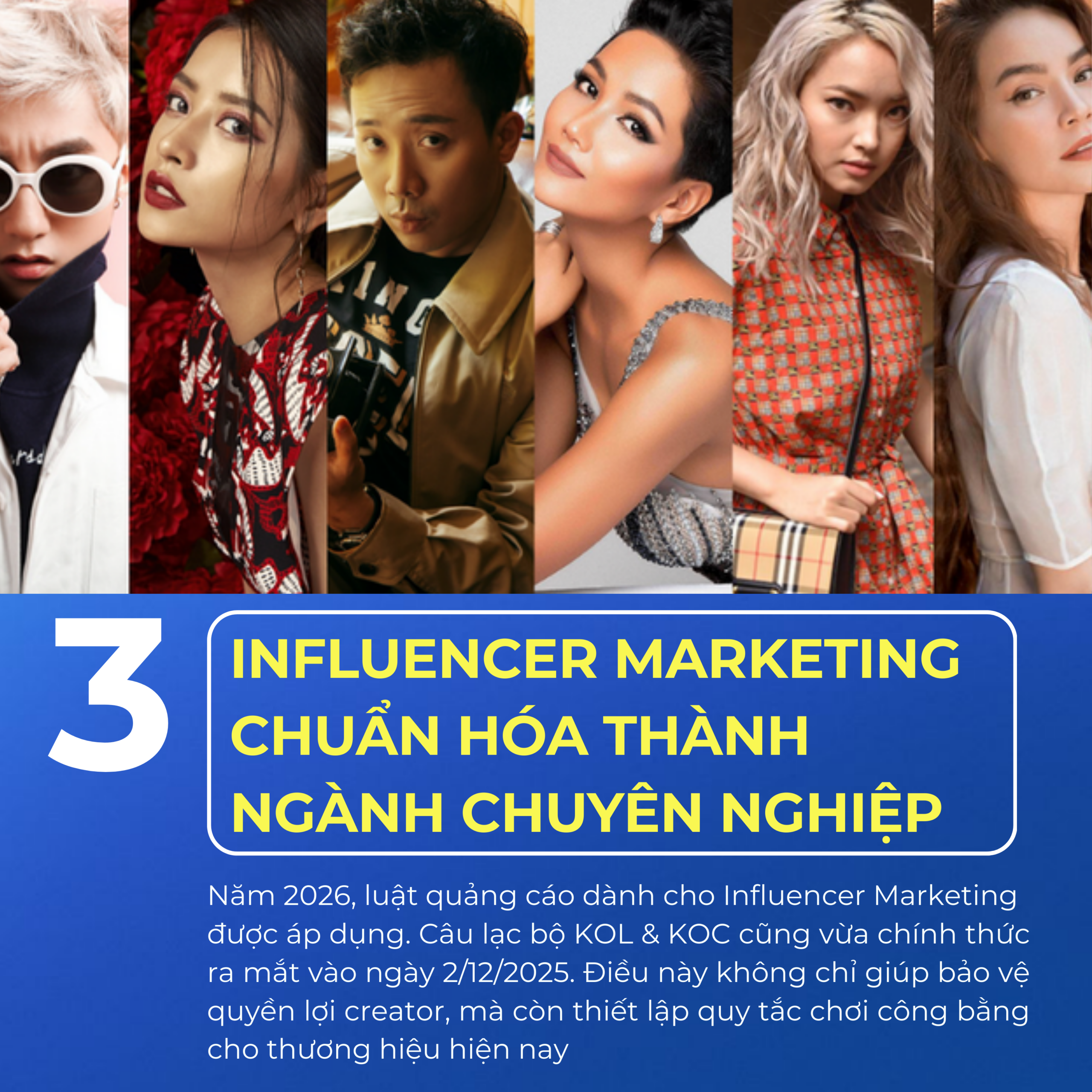 Luật Quảng cáo mới (áp dụng từ 1/1/2026) sẽ là cú hích mạnh mẽ nhất để thanh lọc thị trường Influencer tại Việt Nam.Mọi nội dung quảng cáo bắt buộc phải được gắn nhãn rõ ràng (Sponsor, #Ad, Được tài trợ). Các hành vi review ảo hoặc quảng cáo sai sự thật sẽ đối mặt với chế tài pháp lý nghiêm khắc. Các Influencer chuyên nghiệp giờ đây cần có kiến thức pháp lý, sử dụng hợp đồng rõ ràng và chịu trách nhiệm trực tiếp với thông tin mình đưa ra.  Điều này không chỉ bảo vệ người tiêu dùng mà còn tạo ra một sân chơi công bằng cho những nhà sáng tạo nội dung chân chính và các nhãn hàng uy tín.